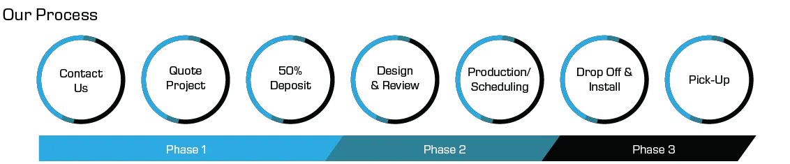- 50% Deposit is required to start any artwork or order materials for any projects. Any refunds of deposit